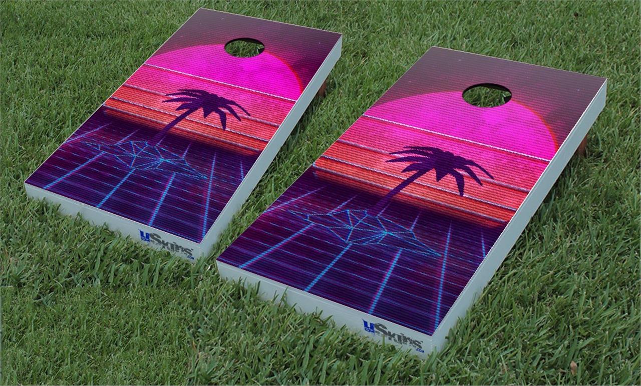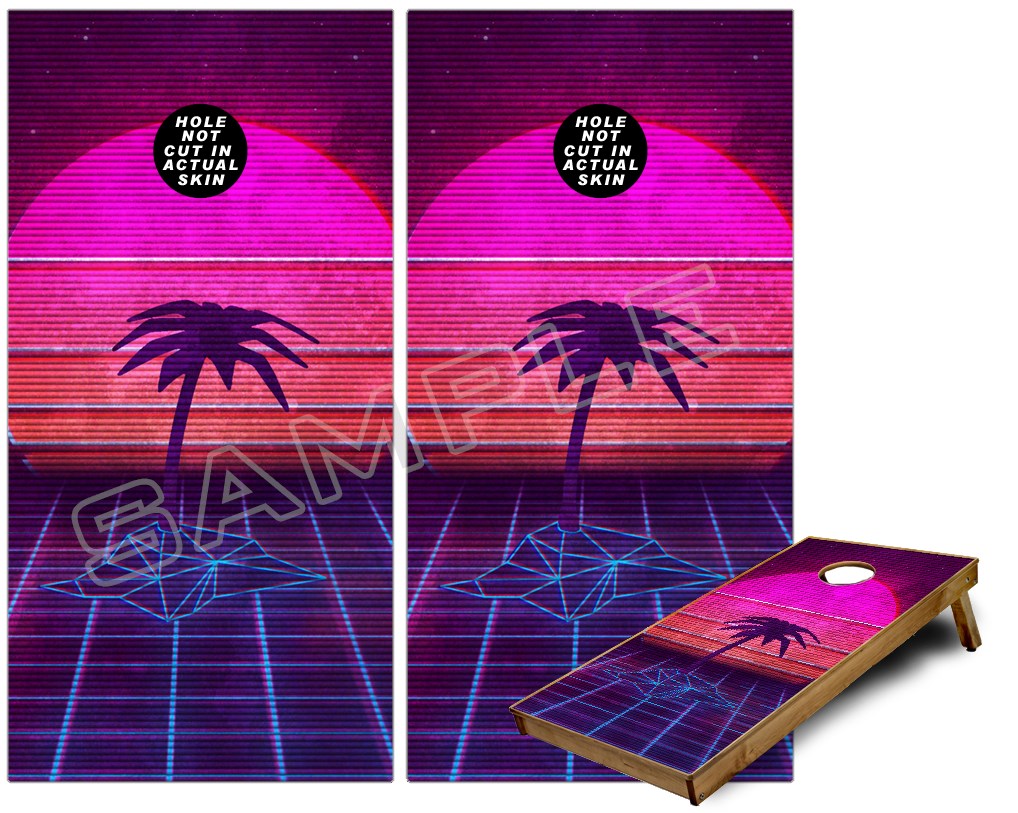 Cornhole Game Board Vinyl Skin Wrap Kit - Synth Beach fits 24x48 game boards (GAMEBOARDS NOT INCLUDED)