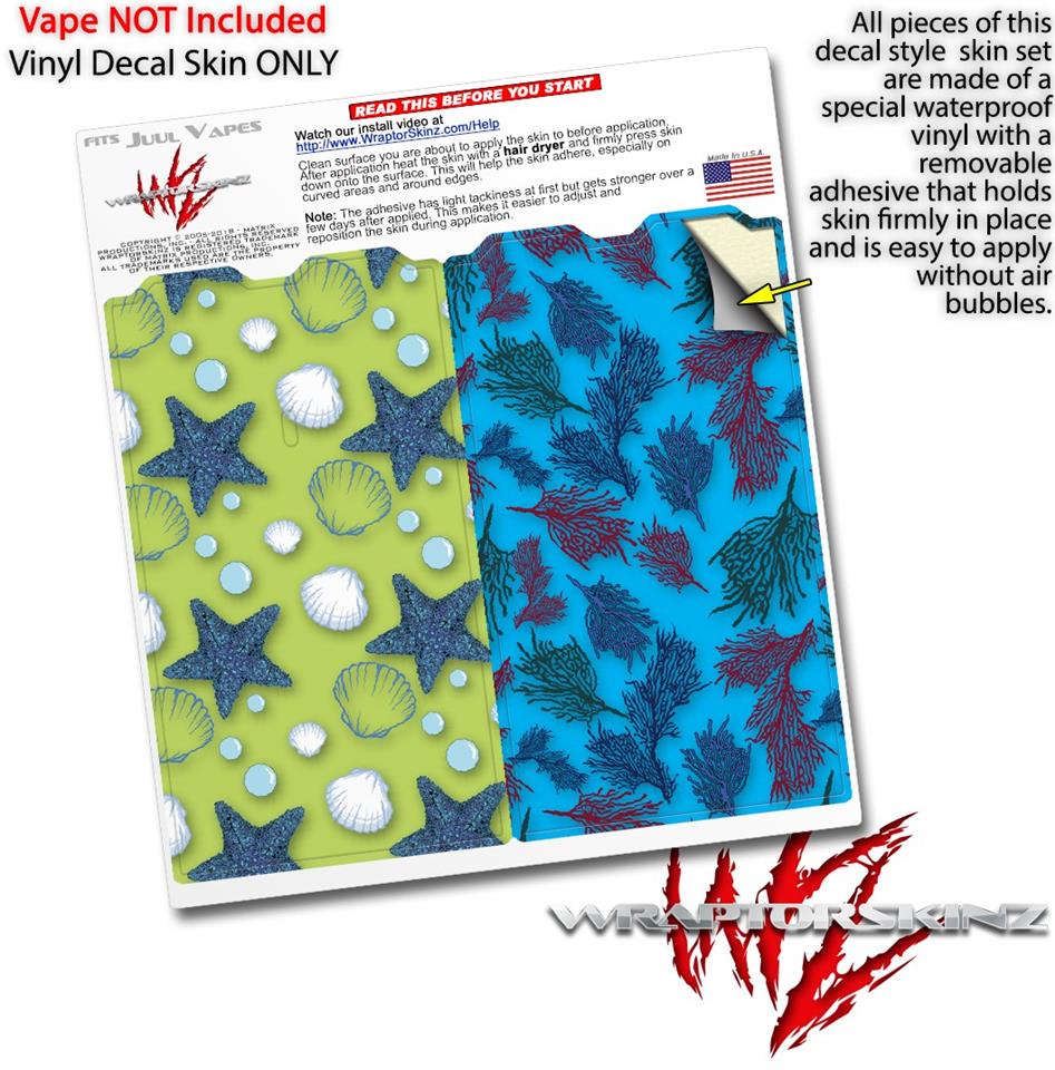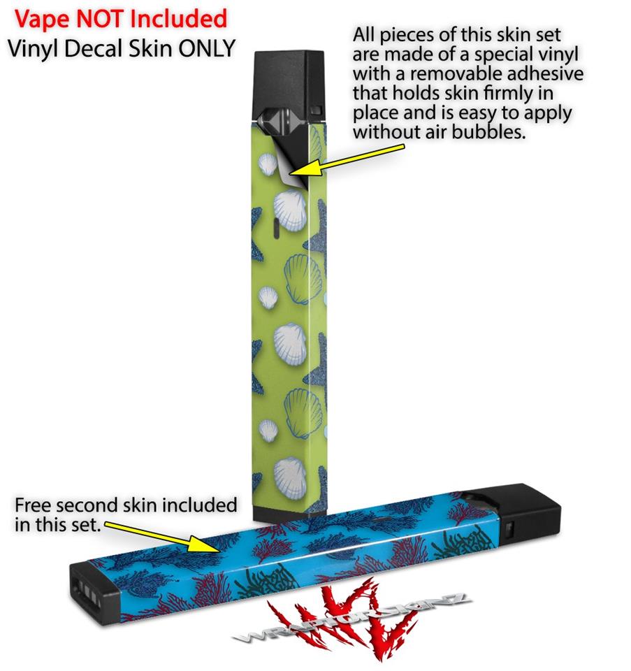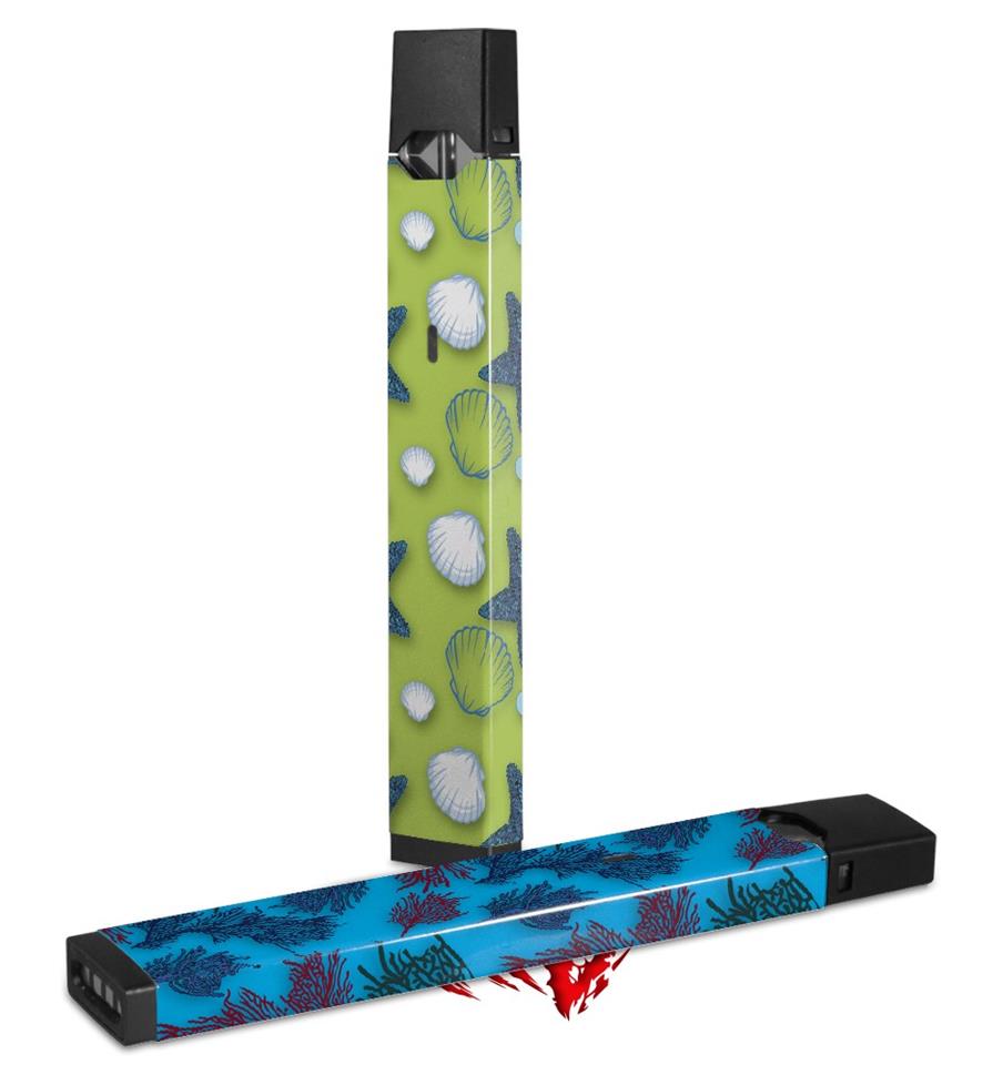 Skin Decal Wrap 2 Pack for Juul Vapes Starfish and Sea Shells Sage Green JUUL NOT INCLUDED