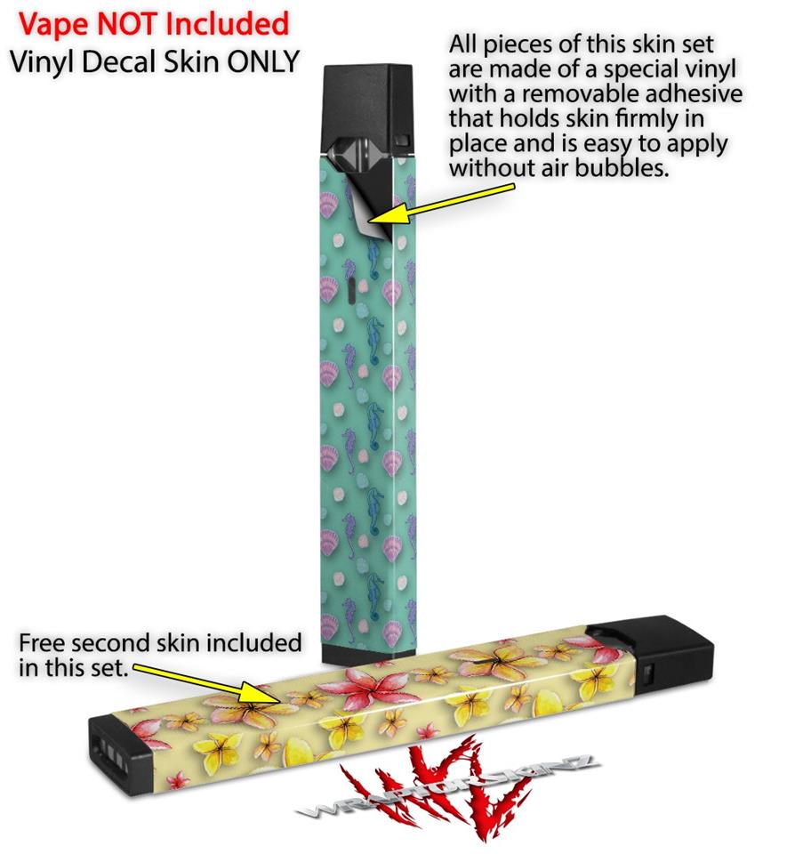 Skin Decal Wrap 2 Pack for Juul Vapes Seahorses and Shells Seafoam Green JUUL NOT INCLUDED