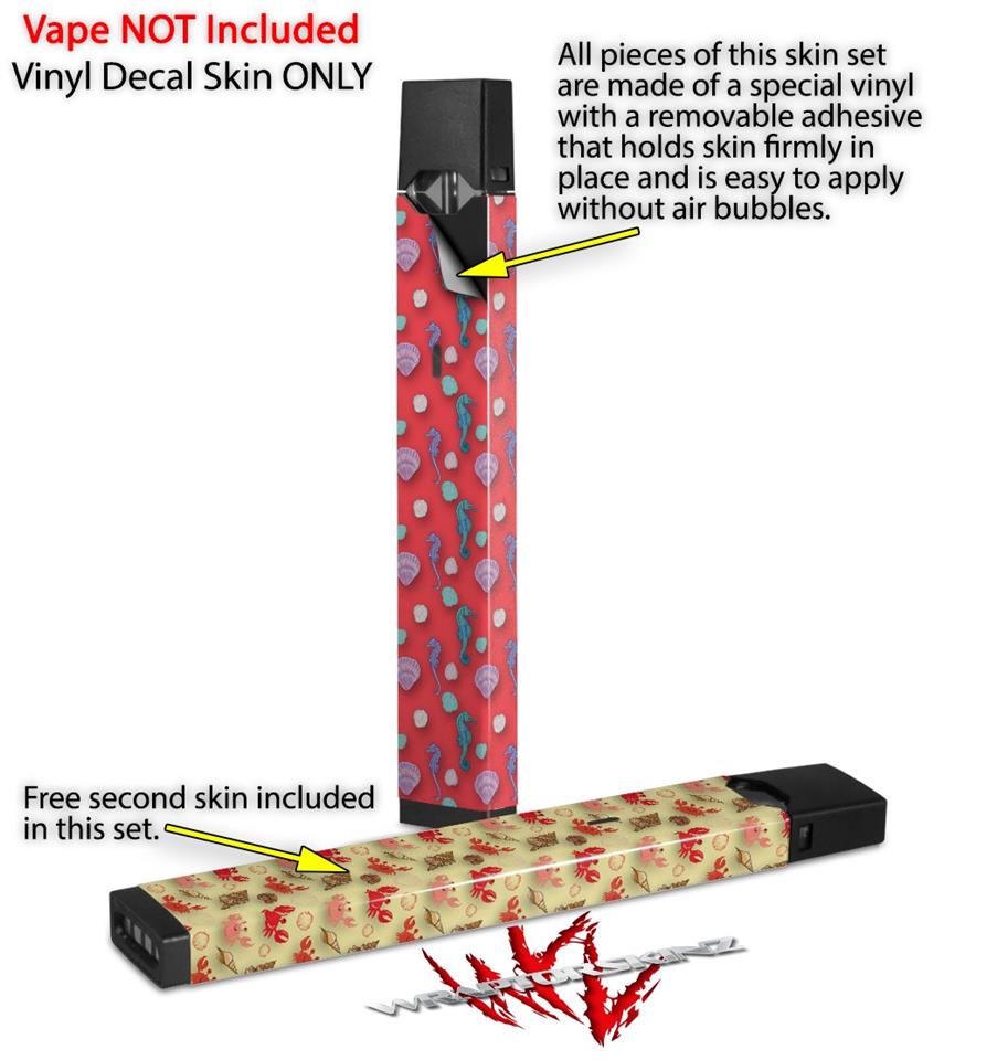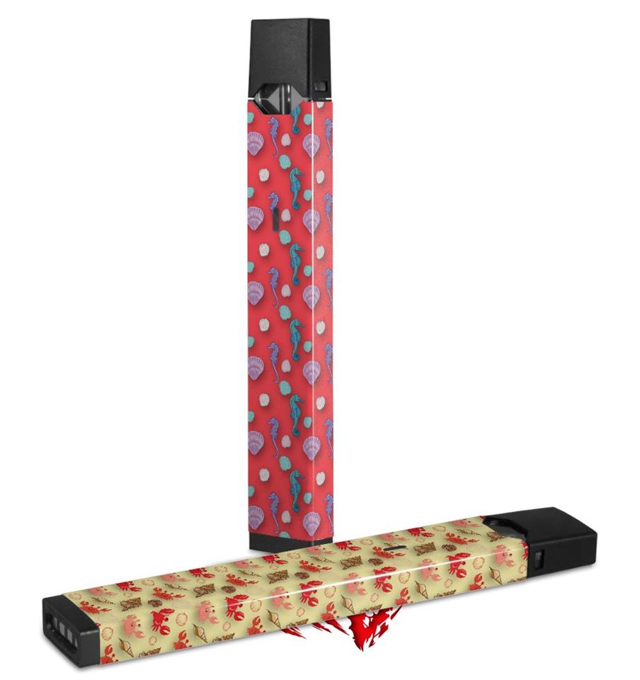 Skin Decal Wrap 2 Pack for Juul Vapes Seahorses and Shells Coral JUUL NOT INCLUDED