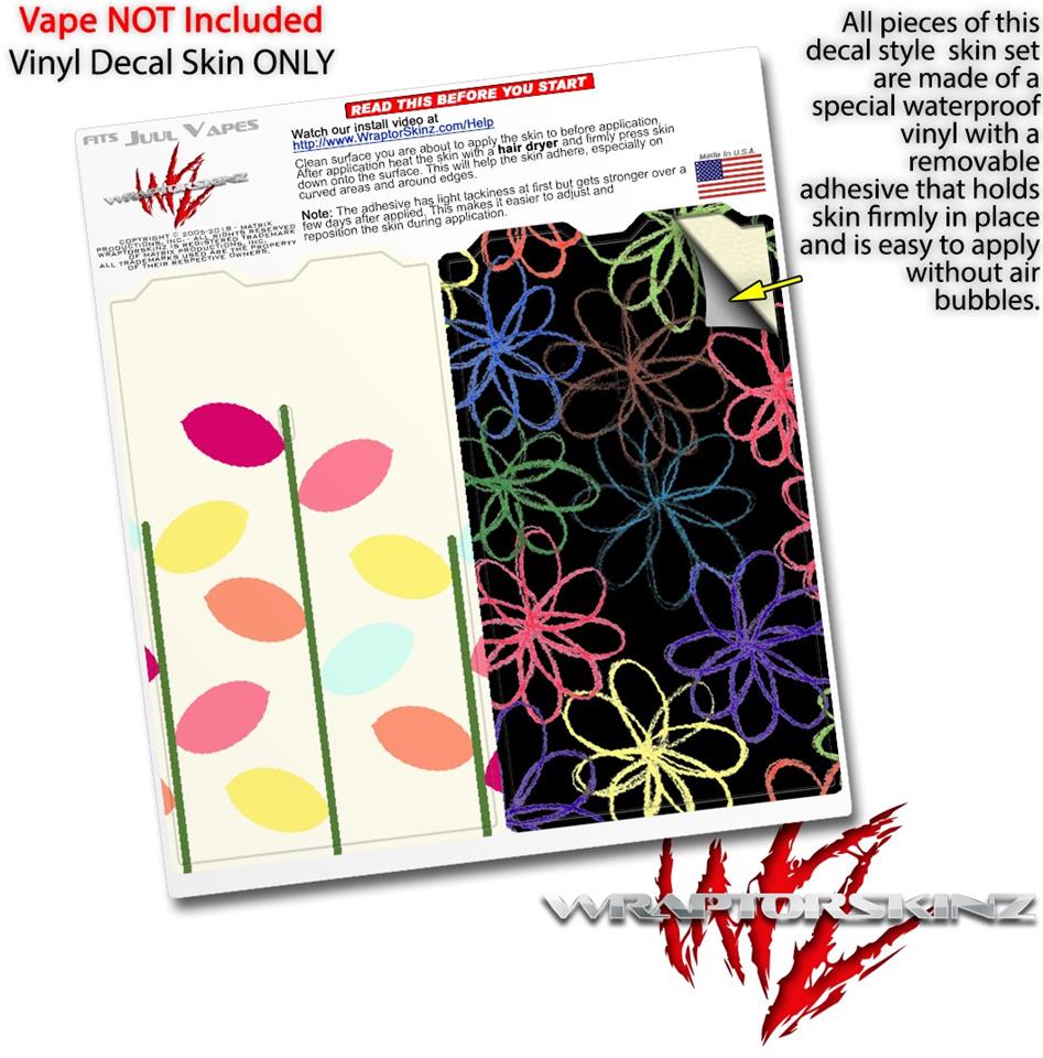 WraptorSkinz® skin wraps are printed using superb photo quality designs and vibrant colors printed with special fade resistant inks that last even in direct sun for years. WraptorSkinz are a composite of two layers of commercial grade materials. The bottom layer is a soft, flexible vinyl with a special removable adhesive that is easily positioned, applied without air bubbles. Next we print the bottom layer with UV protected, fade resistant inks that deliver superb photo quality designs in vibrant colors. Finally we bond a professional grade laminate over the entire skin adding a glossy protective finish. This product is not affiliated with or endorsed by the Juul brand.