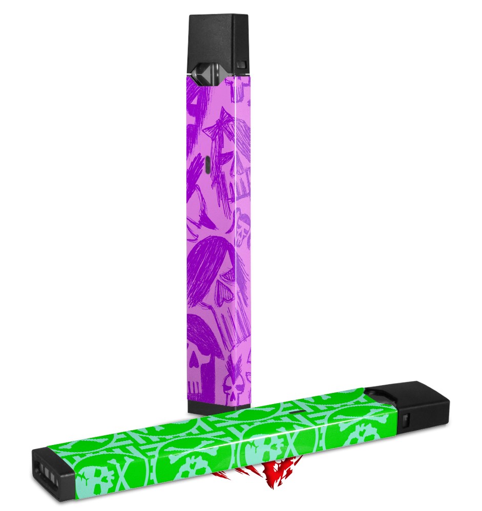 Skin Decal Wrap 2 Pack for Juul Vapes Skull Sketches Purple JUUL NOT INCLUDED