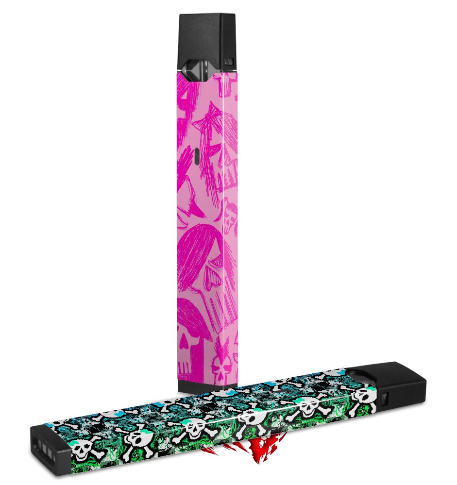 Skin Decal Wrap 2 Pack for Juul Vapes Skull Sketches Pink JUUL NOT INCLUDED