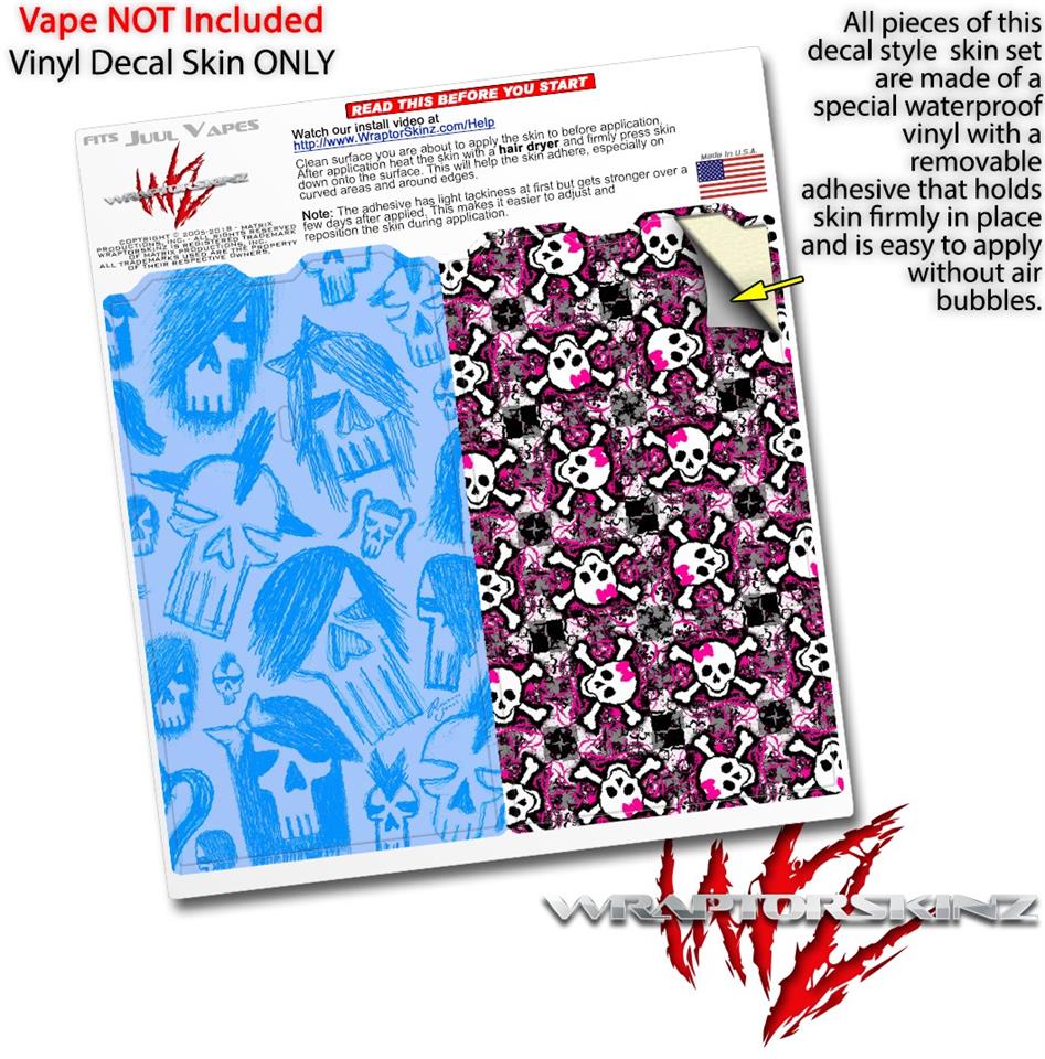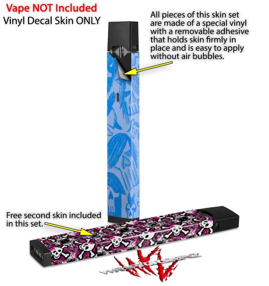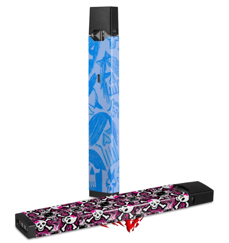 Skin Decal Wrap 2 Pack for Juul Vapes Skull Sketches Blue JUUL NOT INCLUDED