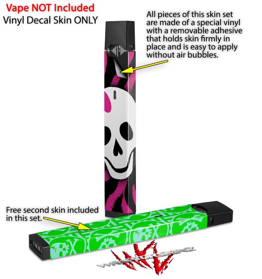 Skin Decal Wrap 2 Pack for Juul Vapes Pink Zebra Skull JUUL NOT INCLUDED