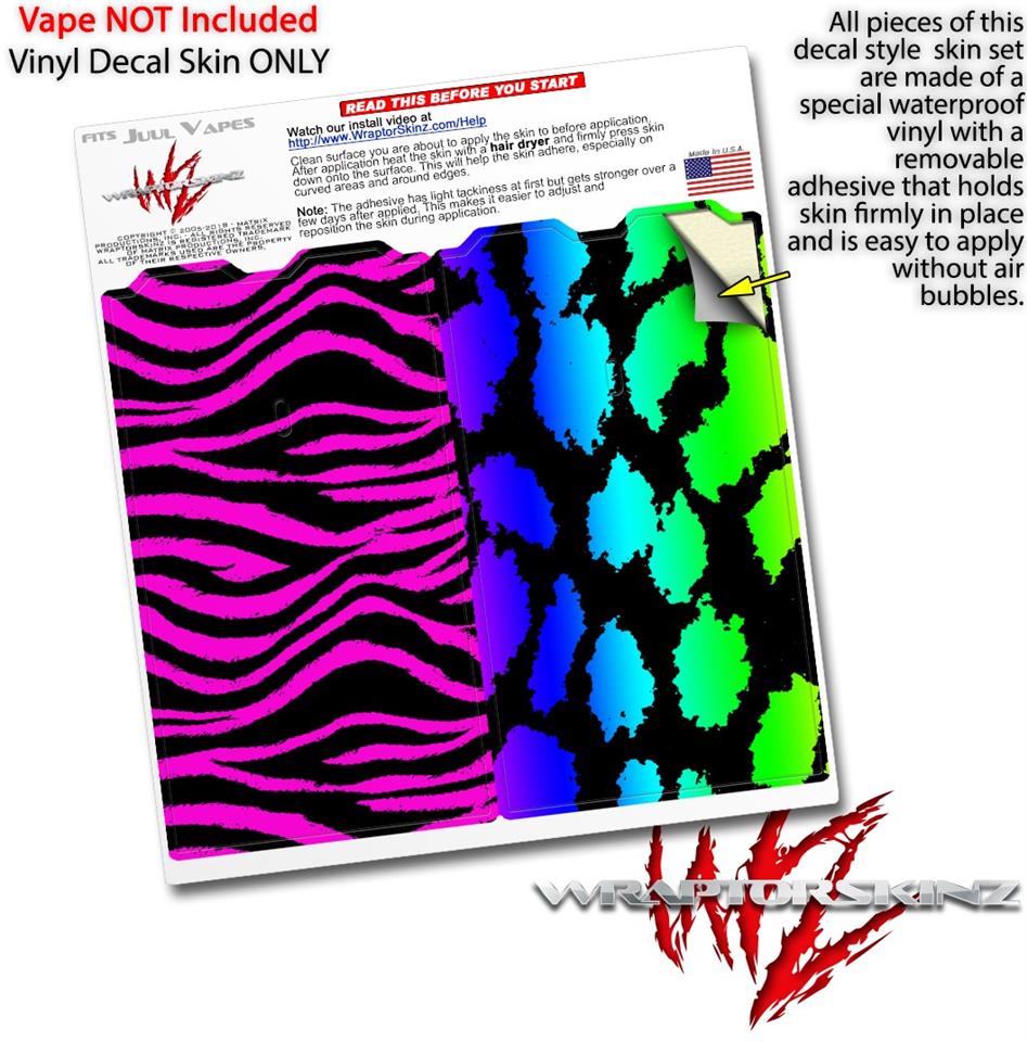 WraptorSkinz® skin wraps are printed using superb photo quality designs and vibrant colors printed with special fade resistant inks that last even in direct sun for years. WraptorSkinz are a composite of two layers of commercial grade materials. The bottom layer is a soft, flexible vinyl with a special removable adhesive that is easily positioned, applied without air bubbles. Next we print the bottom layer with UV protected, fade resistant inks that deliver superb photo quality designs in vibrant colors. Finally we bond a professional grade laminate over the entire skin adding a glossy protective finish. This product is not affiliated with or endorsed by the Juul brand.