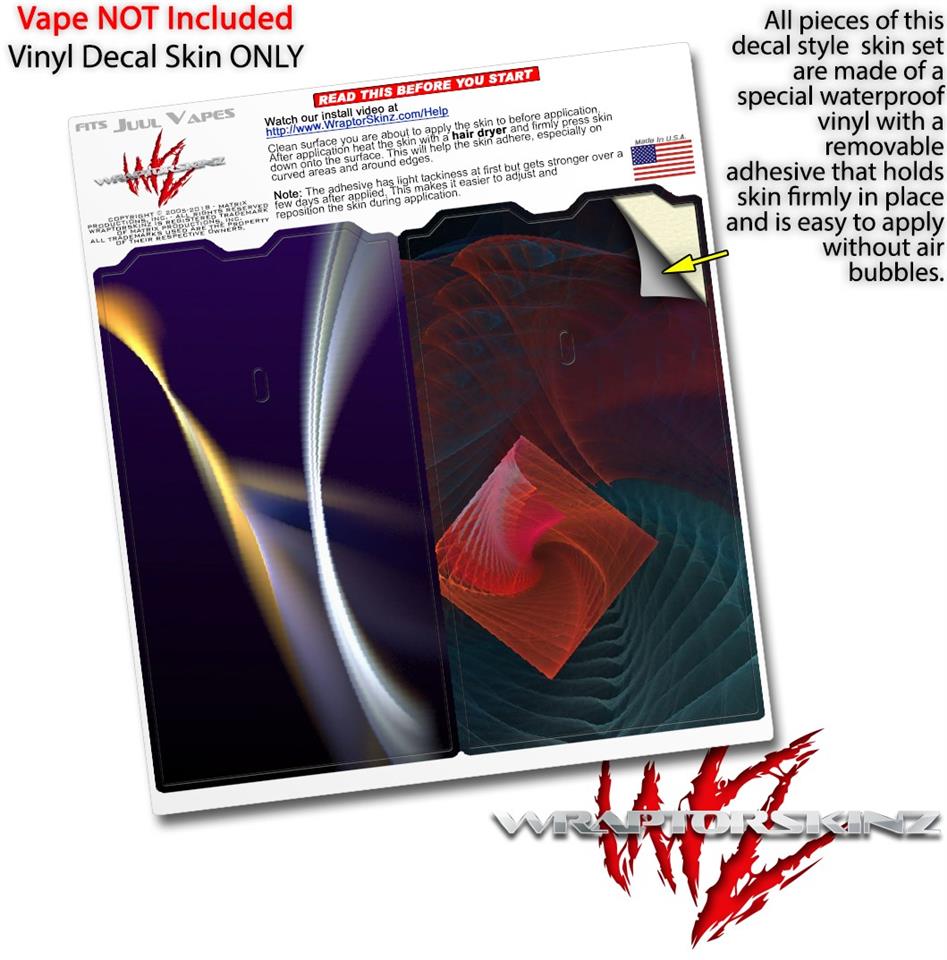 WraptorSkinz® skin wraps are printed using superb photo quality designs and vibrant colors printed with special fade resistant inks that last even in direct sun for years. WraptorSkinz are a composite of two layers of commercial grade materials. The bottom layer is a soft, flexible vinyl with a special removable adhesive that is easily positioned, applied without air bubbles. Next we print the bottom layer with UV protected, fade resistant inks that deliver superb photo quality designs in vibrant colors. Finally we bond a professional grade laminate over the entire skin adding a glossy protective finish. This product is not affiliated with or endorsed by the Juul brand.