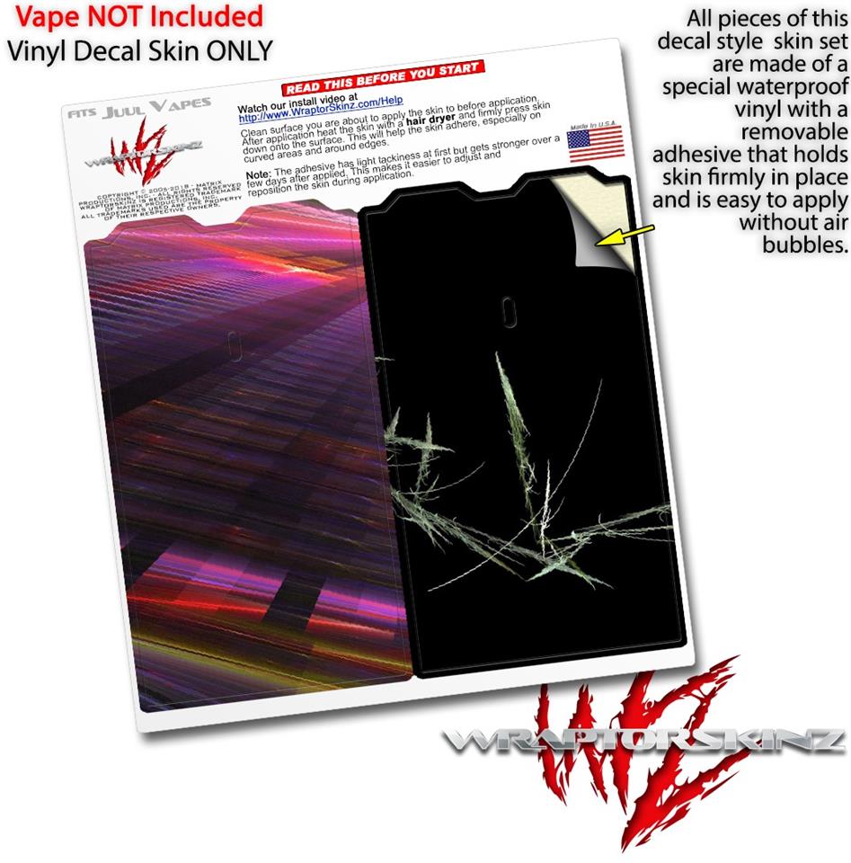 WraptorSkinz® skin wraps are printed using superb photo quality designs and vibrant colors printed with special fade resistant inks that last even in direct sun for years. WraptorSkinz are a composite of two layers of commercial grade materials. The bottom layer is a soft, flexible vinyl with a special removable adhesive that is easily positioned, applied without air bubbles. Next we print the bottom layer with UV protected, fade resistant inks that deliver superb photo quality designs in vibrant colors. Finally we bond a professional grade laminate over the entire skin adding a glossy protective finish. This product is not affiliated with or endorsed by the Juul brand.