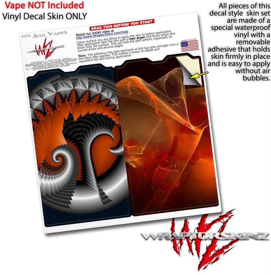 WraptorSkinz® skin wraps are printed using superb photo quality designs and vibrant colors printed with special fade resistant inks that last even in direct sun for years. WraptorSkinz are a composite of two layers of commercial grade materials. The bottom layer is a soft, flexible vinyl with a special removable adhesive that is easily positioned, applied without air bubbles. Next we print the bottom layer with UV protected, fade resistant inks that deliver superb photo quality designs in vibrant colors. Finally we bond a professional grade laminate over the entire skin adding a glossy protective finish. This product is not affiliated with or endorsed by the Juul brand.