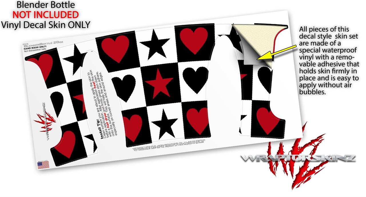 Decal Style Skin Wrap works with Blender Bottle 20oz Hearts and Stars Red (BOTTLE NOT INCLUDED)