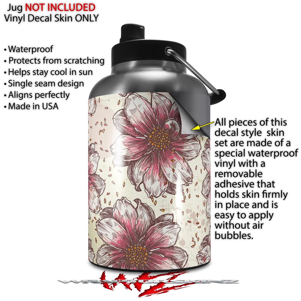 Skin Decal Wrap for 2017 RTIC One Gallon Jug Flowers Pattern 23 (Jug NOT INCLUDED) by WraptorSkinz