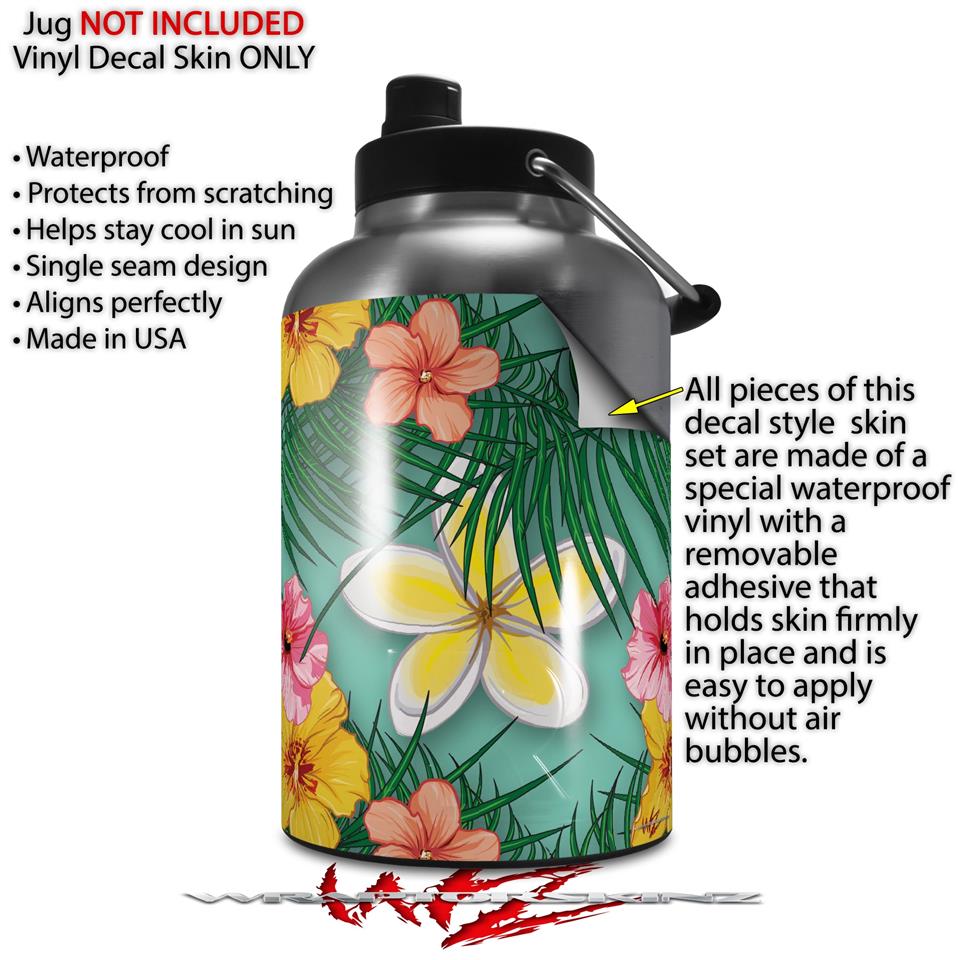 Skin Decal Wrap for 2017 RTIC One Gallon Jug Beach Flowers 02 Seafoam Green (Jug NOT INCLUDED) by WraptorSkinz