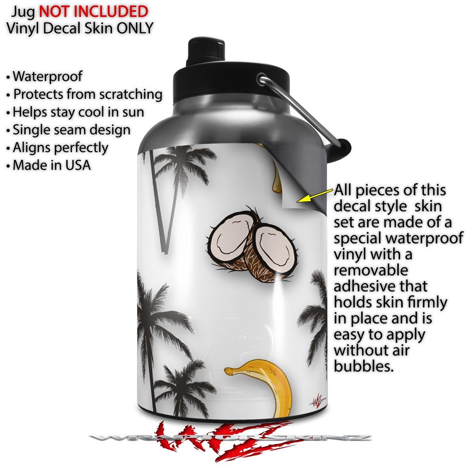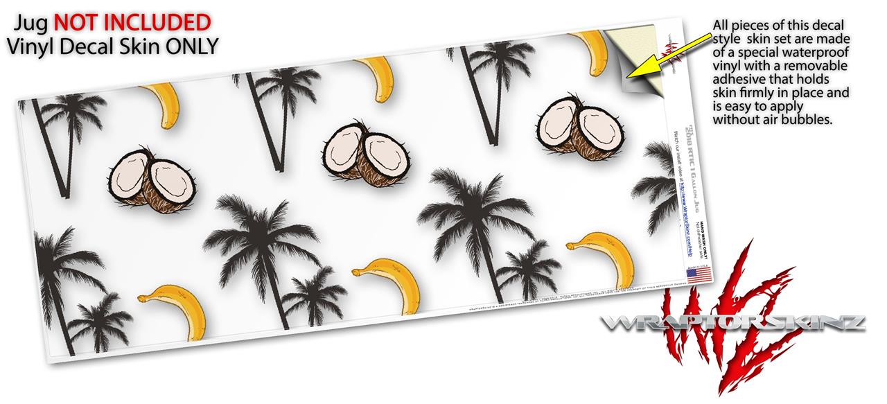 Skin Decal Wrap for 2017 RTIC One Gallon Jug Coconuts Palm Trees and Bananas White (Jug NOT INCLUDED) by WraptorSkinz