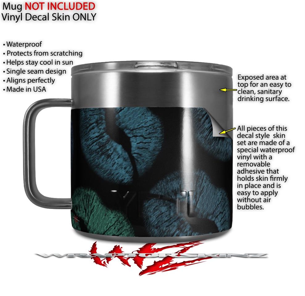 Skin Decal Wrap for Yeti Coffee Mug 14oz Blue Green And Black Lips - 14 oz CUP NOT INCLUDED by WraptorSkinz