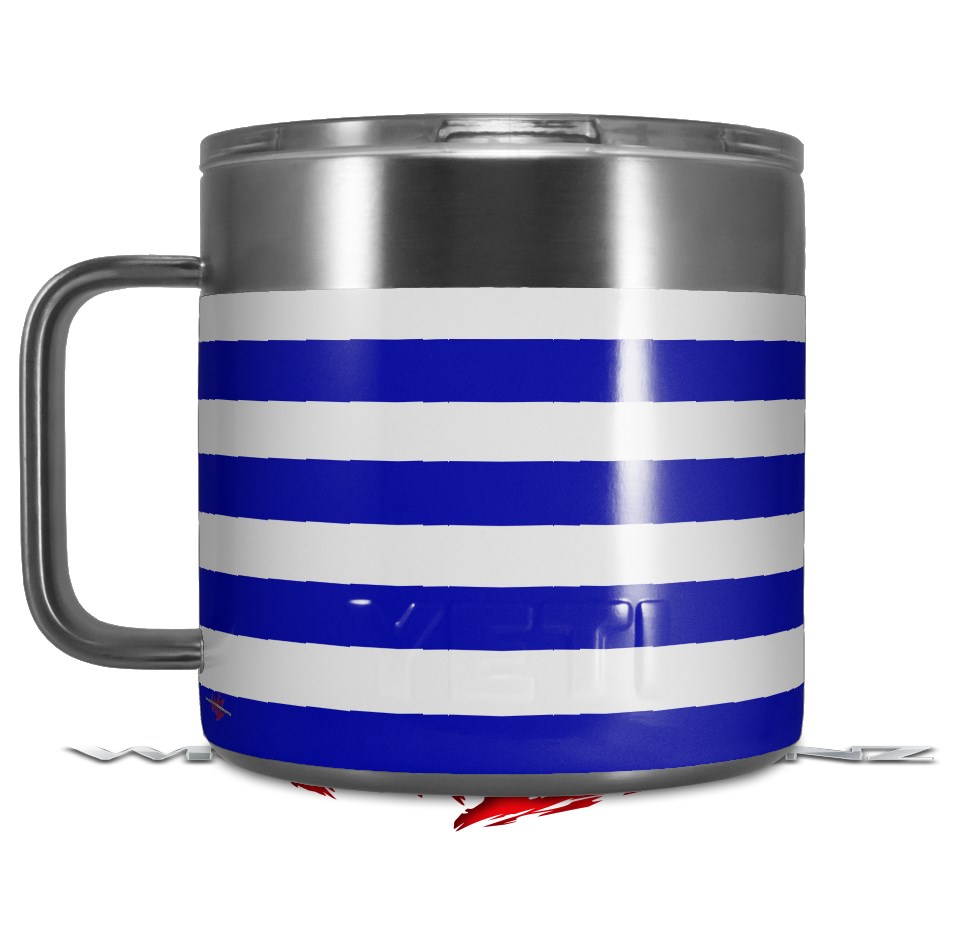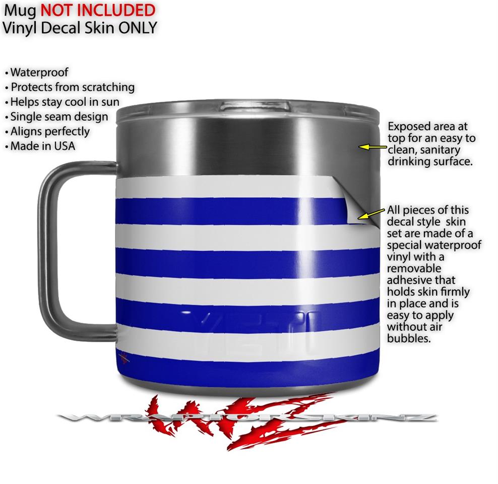 Skin Decal Wrap for Yeti Coffee Mug 14oz Psycho Stripes Blue and White - 14 oz CUP NOT INCLUDED by WraptorSkinz