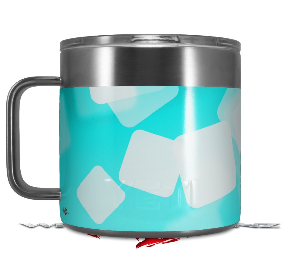 Skin Decal Wrap for Yeti Coffee Mug 14oz Bokeh Squared Neon Teal - 14 oz CUP NOT INCLUDED by WraptorSkinz
