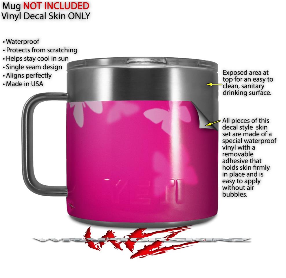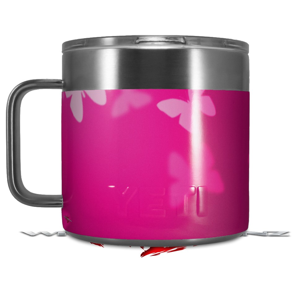 Skin Decal Wrap for Yeti Coffee Mug 14oz Bokeh Butterflies Hot Pink - 14 oz CUP NOT INCLUDED by WraptorSkinz