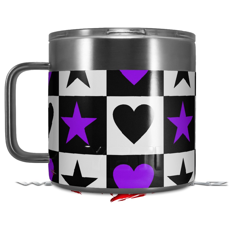 Skin Decal Wrap for Yeti Coffee Mug 14oz Purple Hearts And Stars - 14 oz CUP NOT INCLUDED by WraptorSkinz