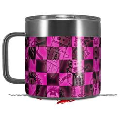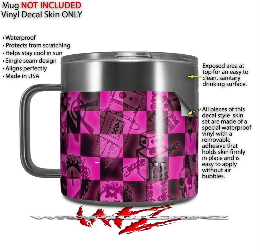 Skin Decal Wrap for Yeti Coffee Mug 14oz Pink Checkerboard Sketches - 14 oz CUP NOT INCLUDED by WraptorSkinz
