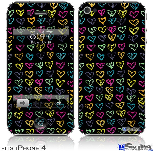 iPhone 4 Decal Style Vinyl Skin - Kearas Hearts Black (DOES NOT fit newer iPhone 4S)