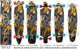Our longboard skins are made so that one size fits boards up to 10” wide x 42” long. This means after applying the skin it you will trimming to fit you’re the shape of your board with a sharp utility knife.