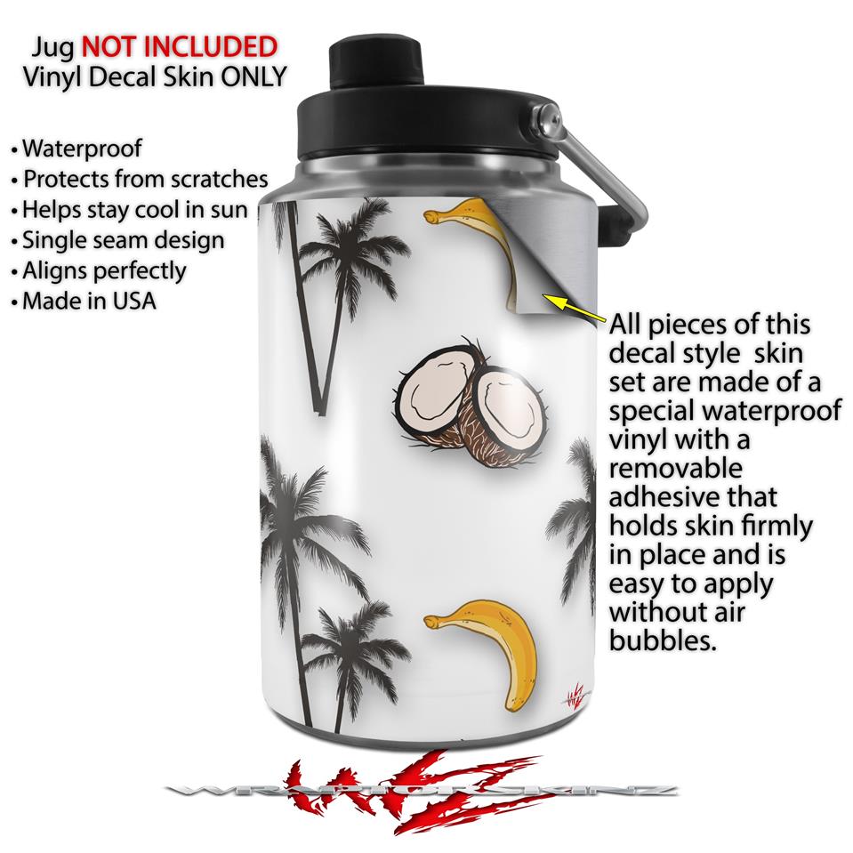 Skin Decal Wrap for Yeti 1 Gallon Jug Coconuts Palm Trees and Bananas White - JUG NOT INCLUDED by WraptorSkinz