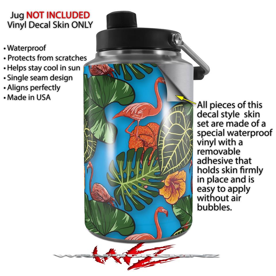 Skin Decal Wrap for Yeti 1 Gallon Jug Famingos and Flowers Blue Medium - JUG NOT INCLUDED by WraptorSkinz
