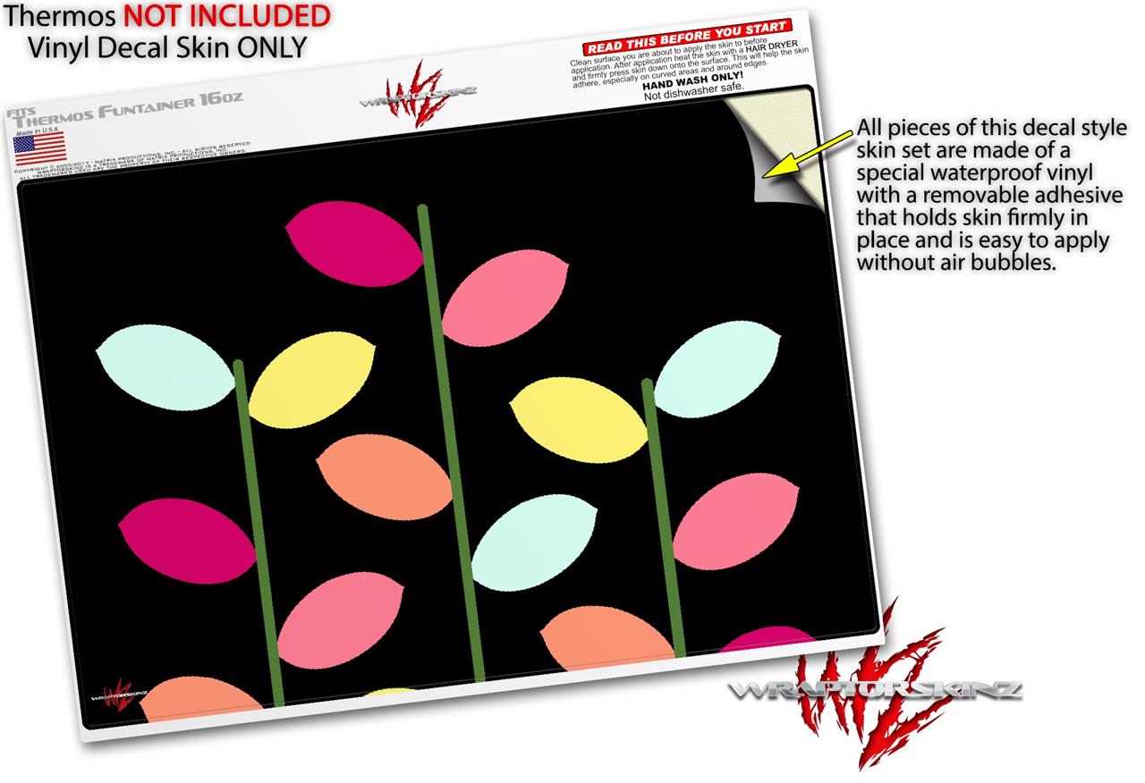 Skin Decal Wrap for Thermos Funtainer 16oz Bottle Plain Leaves On Black (BOTTLE NOT INCLUDED) by WraptorSkinz