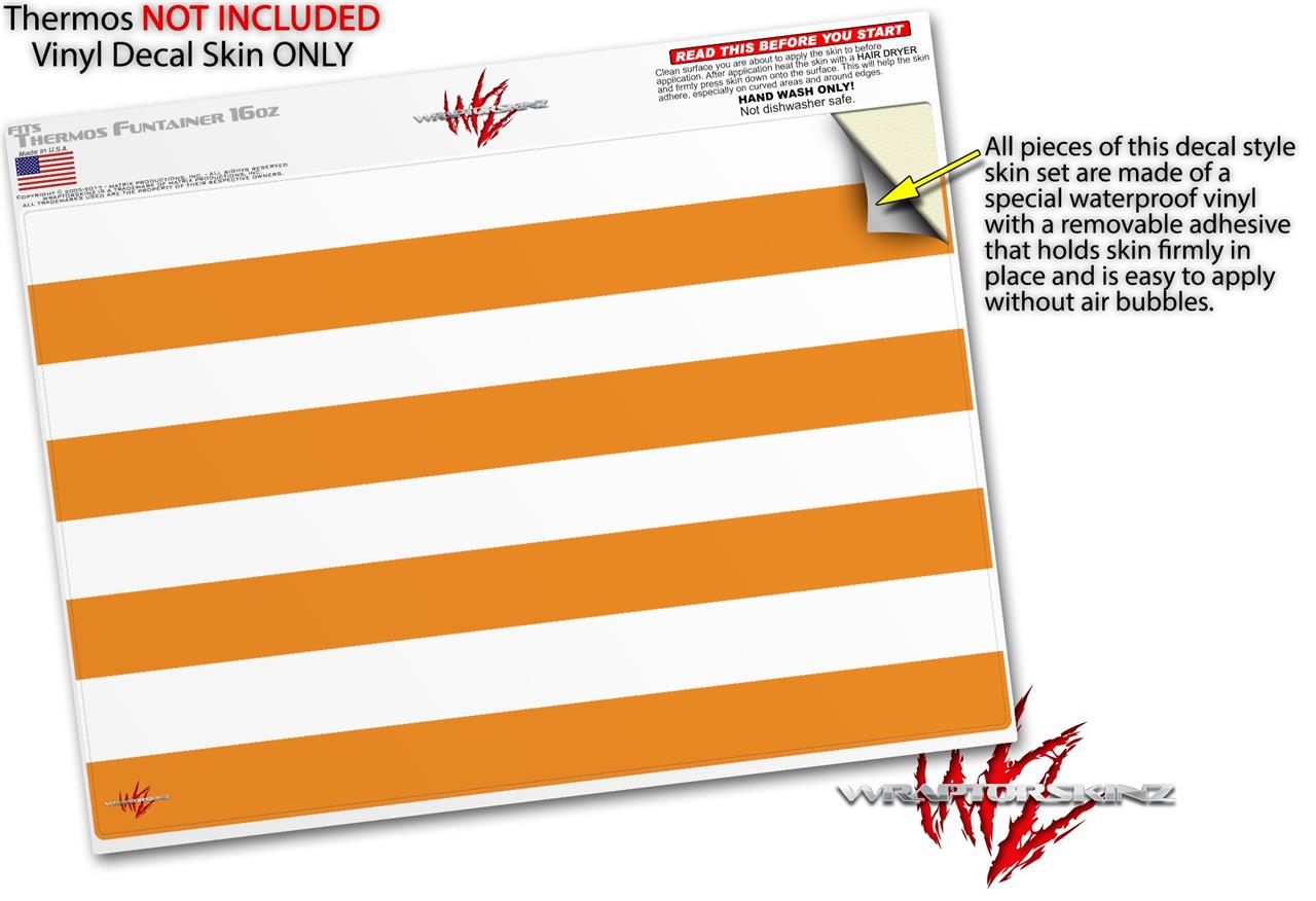 Skin Decal Wrap for Thermos Funtainer 16oz Bottle Psycho Stripes Orange and White (BOTTLE NOT INCLUDED) by WraptorSkinz