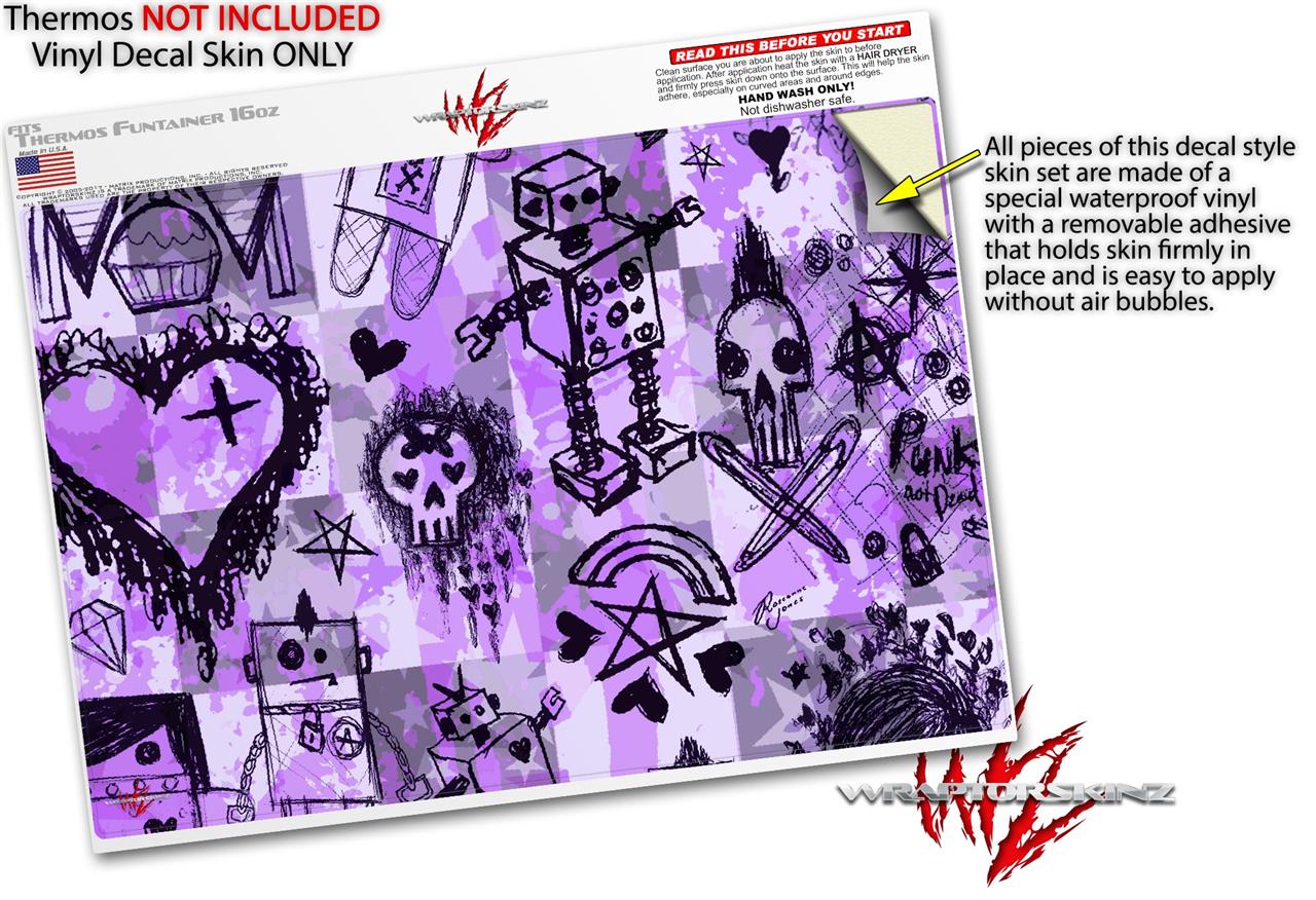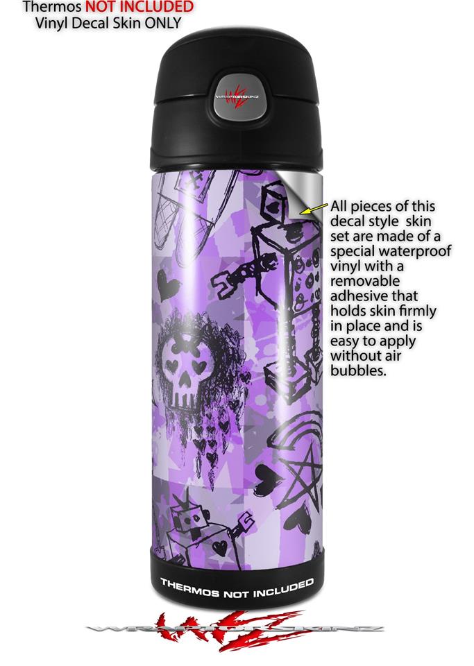 Skin Decal Wrap for Thermos Funtainer 16oz Bottle Scene Kid Sketches Purple (BOTTLE NOT INCLUDED) by WraptorSkinz