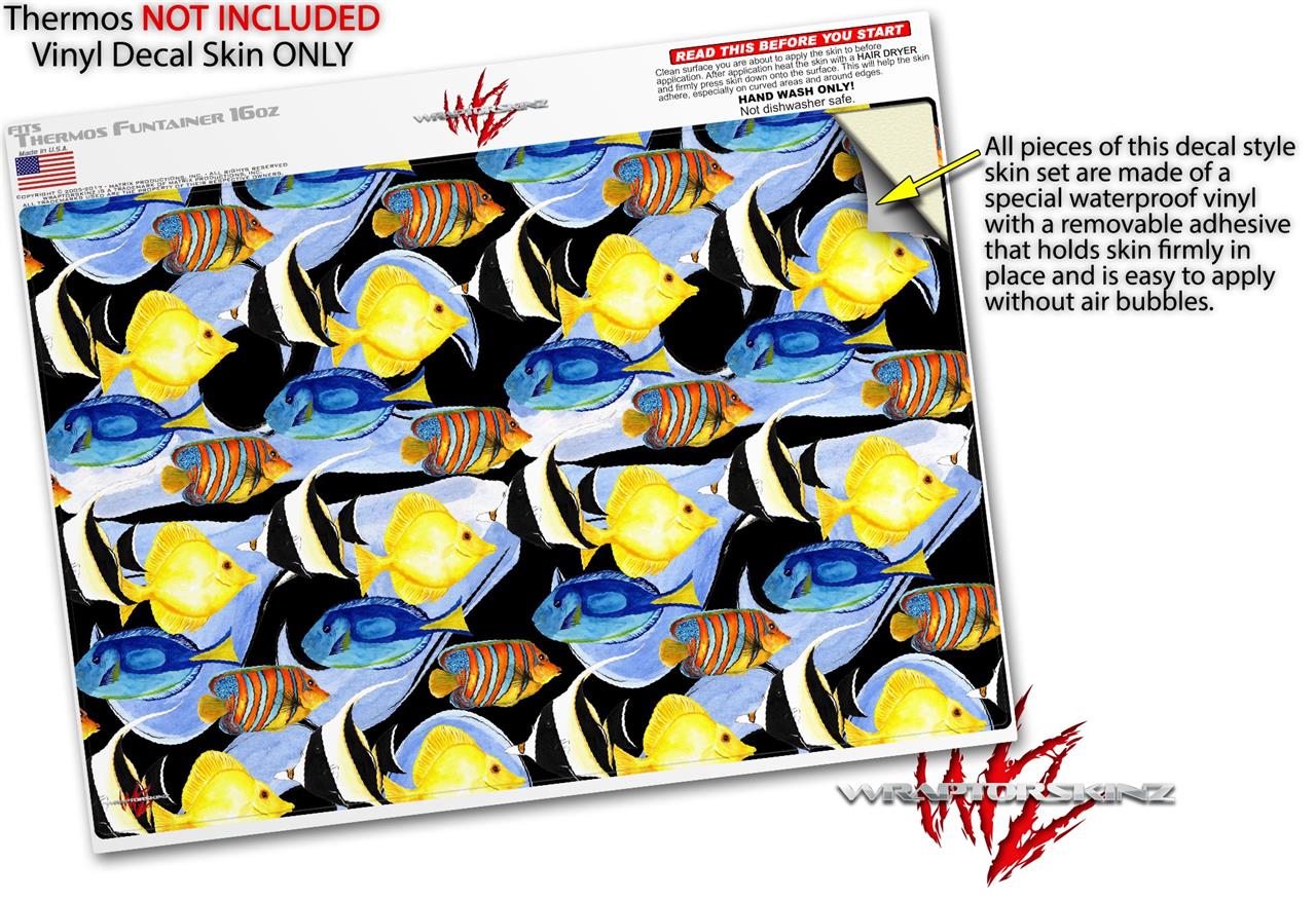 Skin Decal Wrap for Thermos Funtainer 16oz Bottle Tropical Fish 01 Black (BOTTLE NOT INCLUDED) by WraptorSkinz