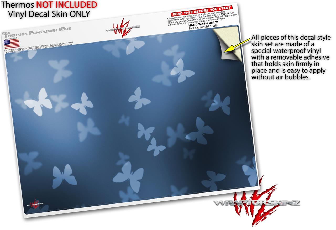 Skin Decal Wrap for Thermos Funtainer 16oz Bottle Bokeh Butterflies Blue (BOTTLE NOT INCLUDED) by WraptorSkinz