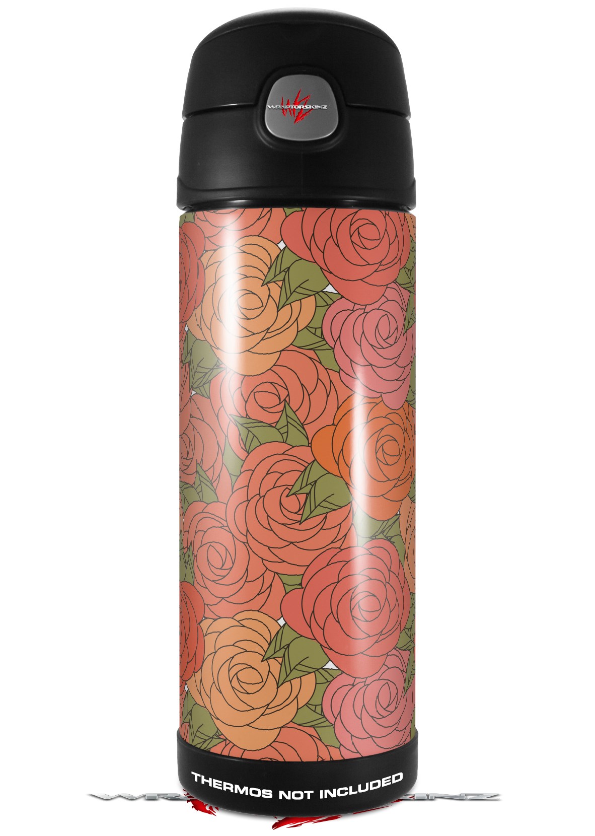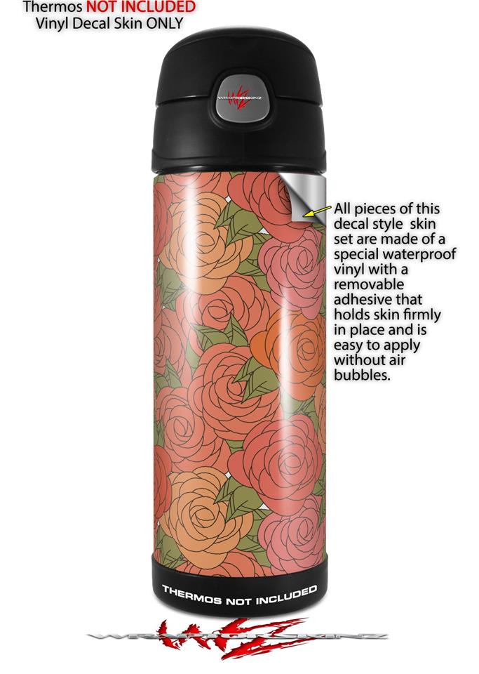 Skin Decal Wrap for Thermos Funtainer 16oz Bottle Flowers Pattern Roses 06 (BOTTLE NOT INCLUDED) by WraptorSkinz