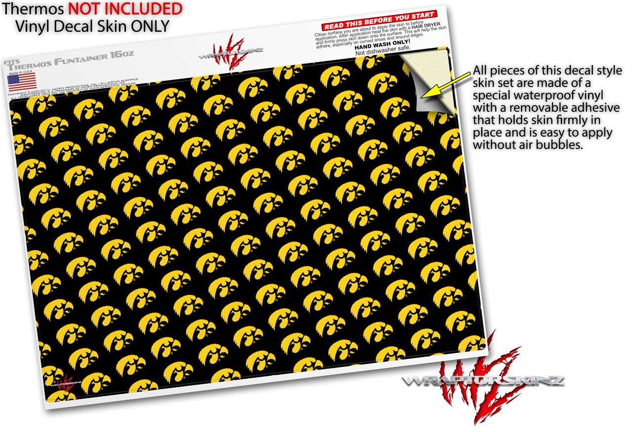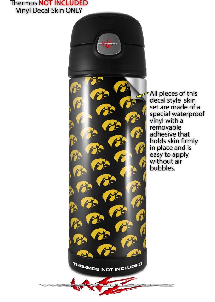 Skin Decal Wrap for Thermos Funtainer 16oz Bottle Iowa Hawkeyes Tigerhawk Tiled 06 Gold on Black (BOTTLE NOT INCLUDED) by WraptorSkinz