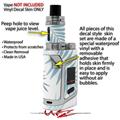 WraptorSkinz® skin wraps are printed using superb photo quality designs and vibrant colors printed with special fade resistant inks that last even in direct sun for years. WraptorSkinz are a composite of two layers of commercial grade materials. The bottom layer is a soft, flexible vinyl with a special removable adhesive that is easily positioned, applied without air bubbles. Next we print the bottom layer with UV protected, fade resistant inks that deliver superb photo quality designs in vibrant colors. Finally we bond a professional grade laminate over the entire skin adding a glossy protective finish. This product is not affiliated with or endorsed by the Smok brand.
