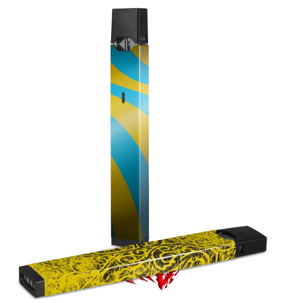 Skin Decal Wrap 2 Pack for Juul Vapes Two Tone Waves Yellow Teal JUUL NOT INCLUDED