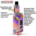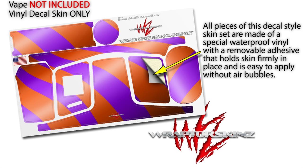 WraptorSkinz® skin wraps are printed using superb photo quality designs and vibrant colors printed with special fade resistant inks that last even in direct sun for years. WraptorSkinz are a composite of two layers of commercial grade materials. The bottom layer is a soft, flexible vinyl with a special removable adhesive that is easily positioned, applied without air bubbles. Next we print the bottom layer with UV protected, fade resistant inks that deliver superb photo quality designs in vibrant colors. Finally we bond a professional grade laminate over the entire skin adding a glossy protective finish. This product is not affiliated with or endorsed by the Smok brand.