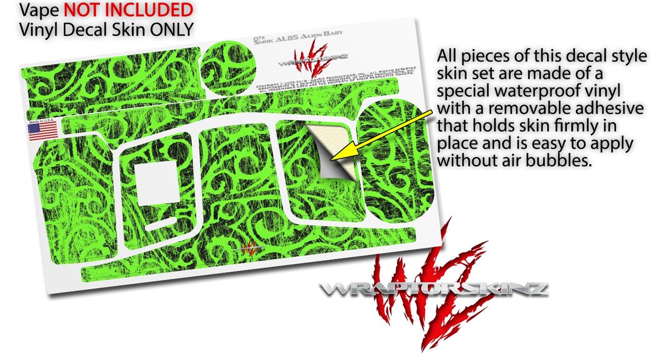 Skin Decal Wrap for Smok AL85 Alien Baby Folder Doodles Neon Green VAPE NOT INCLUDED