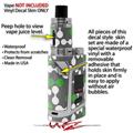WraptorSkinz® skin wraps are printed using superb photo quality designs and vibrant colors printed with special fade resistant inks that last even in direct sun for years. WraptorSkinz are a composite of two layers of commercial grade materials. The bottom layer is a soft, flexible vinyl with a special removable adhesive that is easily positioned, applied without air bubbles. Next we print the bottom layer with UV protected, fade resistant inks that deliver superb photo quality designs in vibrant colors. Finally we bond a professional grade laminate over the entire skin adding a glossy protective finish. This product is not affiliated with or endorsed by the Smok brand.