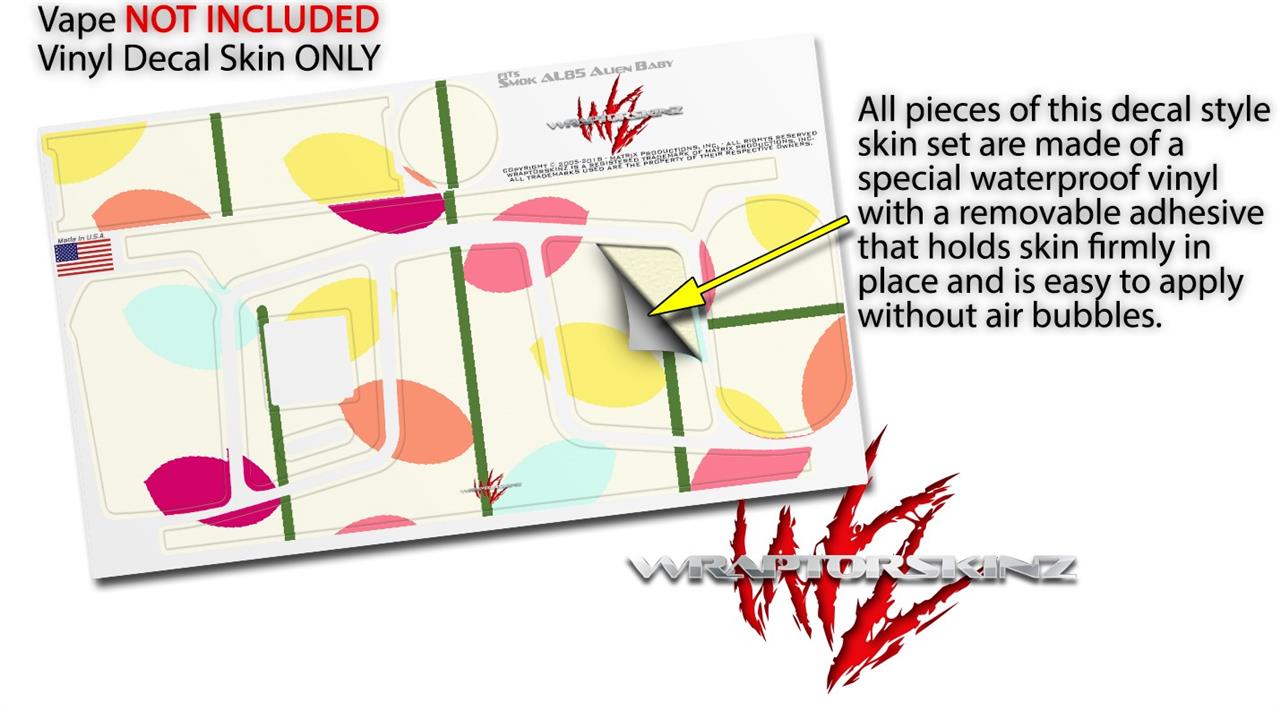 WraptorSkinz® skin wraps are printed using superb photo quality designs and vibrant colors printed with special fade resistant inks that last even in direct sun for years. WraptorSkinz are a composite of two layers of commercial grade materials. The bottom layer is a soft, flexible vinyl with a special removable adhesive that is easily positioned, applied without air bubbles. Next we print the bottom layer with UV protected, fade resistant inks that deliver superb photo quality designs in vibrant colors. Finally we bond a professional grade laminate over the entire skin adding a glossy protective finish. This product is not affiliated with or endorsed by the Smok brand.