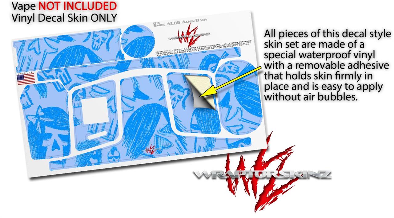 Skin Decal Wrap for Smok AL85 Alien Baby Skull Sketches Blue VAPE NOT INCLUDED