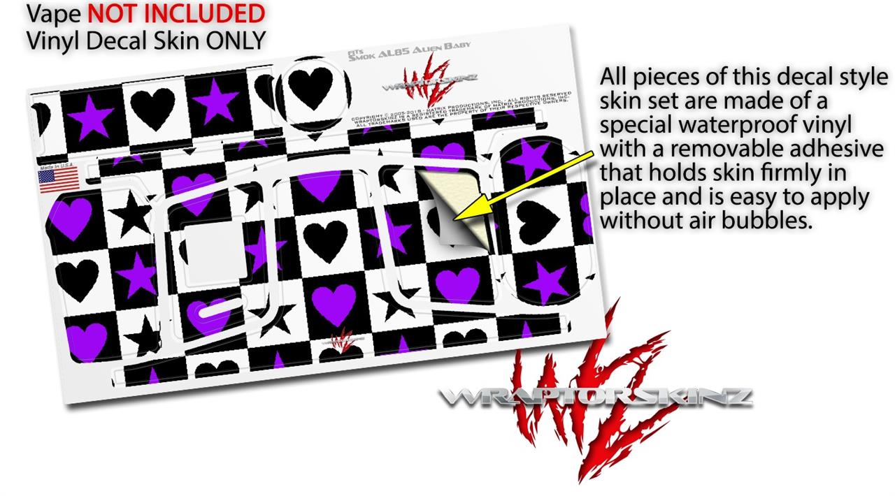 Skin Decal Wrap for Smok AL85 Alien Baby Purple Hearts And Stars VAPE NOT INCLUDED