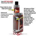 WraptorSkinz® skin wraps are printed using superb photo quality designs and vibrant colors printed with special fade resistant inks that last even in direct sun for years. WraptorSkinz are a composite of two layers of commercial grade materials. The bottom layer is a soft, flexible vinyl with a special removable adhesive that is easily positioned, applied without air bubbles. Next we print the bottom layer with UV protected, fade resistant inks that deliver superb photo quality designs in vibrant colors. Finally we bond a professional grade laminate over the entire skin adding a glossy protective finish. This product is not affiliated with or endorsed by the Smok brand.
