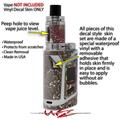 WraptorSkinz® skin wraps are printed using superb photo quality designs and vibrant colors printed with special fade resistant inks that last even in direct sun for years. WraptorSkinz are a composite of two layers of commercial grade materials. The bottom layer is a soft, flexible vinyl with a special removable adhesive that is easily positioned, applied without air bubbles. Next we print the bottom layer with UV protected, fade resistant inks that deliver superb photo quality designs in vibrant colors. Finally we bond a professional grade laminate over the entire skin adding a glossy protective finish. This product is not affiliated with or endorsed by the Smok brand.