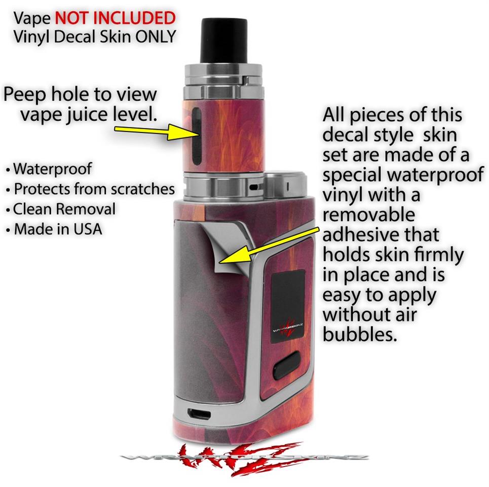 WraptorSkinz® skin wraps are printed using superb photo quality designs and vibrant colors printed with special fade resistant inks that last even in direct sun for years. WraptorSkinz are a composite of two layers of commercial grade materials. The bottom layer is a soft, flexible vinyl with a special removable adhesive that is easily positioned, applied without air bubbles. Next we print the bottom layer with UV protected, fade resistant inks that deliver superb photo quality designs in vibrant colors. Finally we bond a professional grade laminate over the entire skin adding a glossy protective finish. This product is not affiliated with or endorsed by the Smok brand.