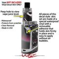 WraptorSkinz® skin wraps are printed using superb photo quality designs and vibrant colors printed with special fade resistant inks that last even in direct sun for years. WraptorSkinz are a composite of two layers of commercial grade materials. The bottom layer is a soft, flexible vinyl with a special removable adhesive that is easily positioned, applied without air bubbles. Next we print the bottom layer with UV protected, fade resistant inks that deliver superb photo quality designs in vibrant colors. Finally we bond a professional grade laminate over the entire skin adding a glossy protective finish. This product is not affiliated with or endorsed by the Smok brand.