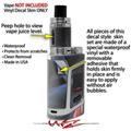 WraptorSkinz® skin wraps are printed using superb photo quality designs and vibrant colors printed with special fade resistant inks that last even in direct sun for years. WraptorSkinz are a composite of two layers of commercial grade materials. The bottom layer is a soft, flexible vinyl with a special removable adhesive that is easily positioned, applied without air bubbles. Next we print the bottom layer with UV protected, fade resistant inks that deliver superb photo quality designs in vibrant colors. Finally we bond a professional grade laminate over the entire skin adding a glossy protective finish. This product is not affiliated with or endorsed by the Smok brand.