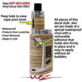 WraptorSkinz® skin wraps are printed using superb photo quality designs and vibrant colors printed with special fade resistant inks that last even in direct sun for years. WraptorSkinz are a composite of two layers of commercial grade materials. The bottom layer is a soft, flexible vinyl with a special removable adhesive that is easily positioned, applied without air bubbles. Next we print the bottom layer with UV protected, fade resistant inks that deliver superb photo quality designs in vibrant colors. Finally we bond a professional grade laminate over the entire skin adding a glossy protective finish. This product is not affiliated with or endorsed by the Smok brand.