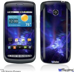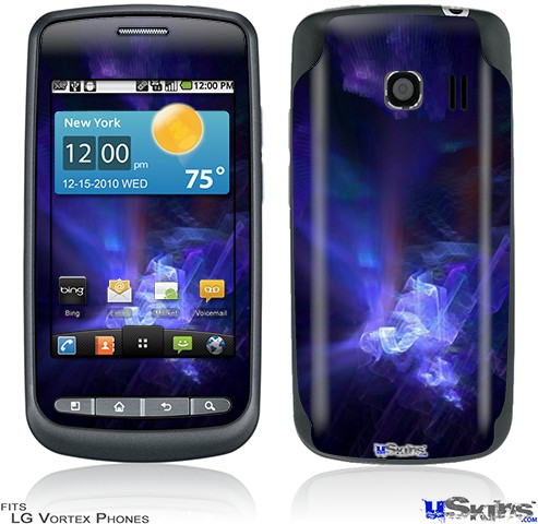 Skin covers front and back of LG Vortex cell phone.