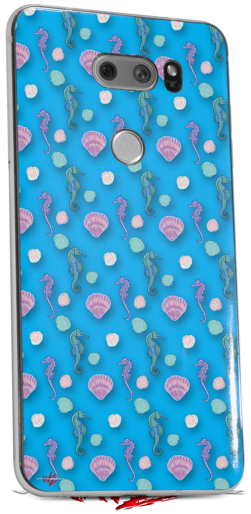 Skin Decal Wrap for LG V30 Seahorses and Shells Blue Medium